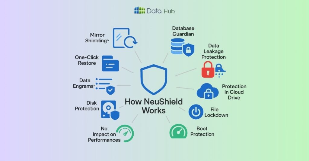 NeuShield features Mirror Shielding technology, which automatically creates invisible backup copies of files, enables fast file recovery without paying ransom, and protects against real-time encryption-based attacks.